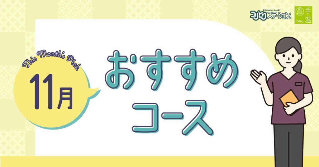 冬の訪れを感じる11月。冷えや乾燥で体が緊張しやすく、疲れが溜まりやすい季節です。 しっかりケアして、寒さに負けない体を整えましょう!